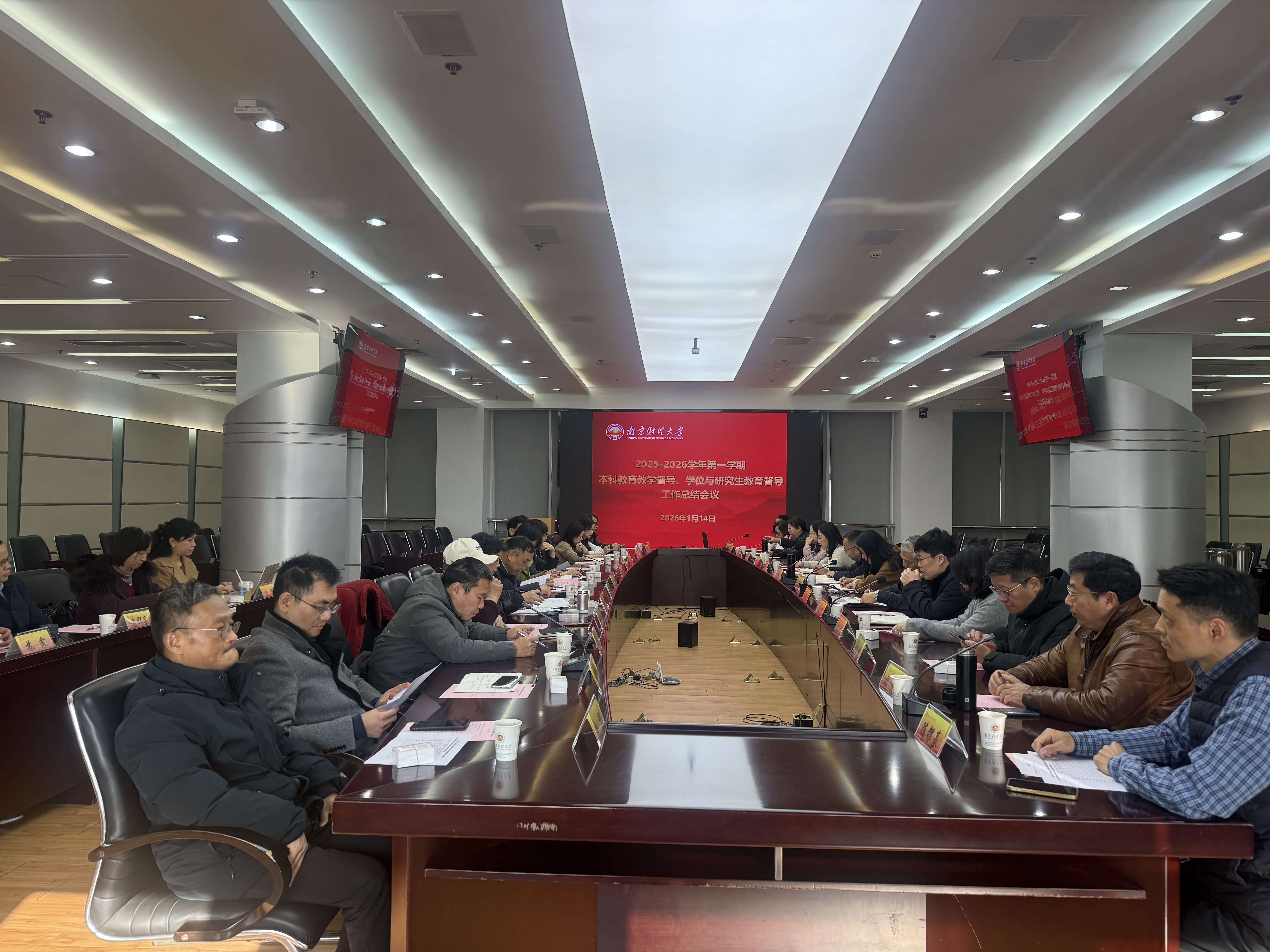 1月14日上午,我校在仙林校区行政楼16楼会议室召开2025—2026学年第一学期本科教育教学督导、学位与研究生教育督导工作总结会议。党委常委、副校长叶林祥,学生处、研究生院、人事处、教务处相关职能部门领导,本科教育教学督导,学位与研究生教育督导等参加会议。会议由评估及质量监控中心主任阚京华主持。